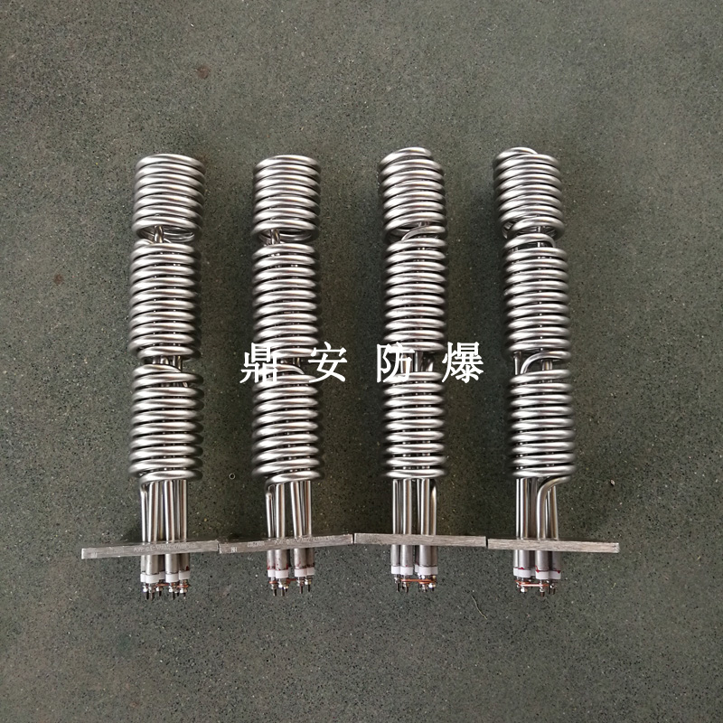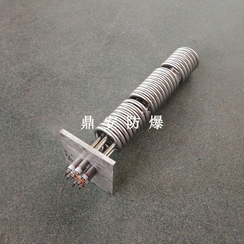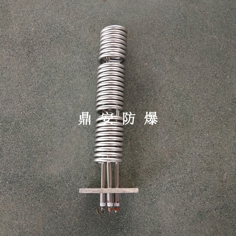 法蘭電熱管(也稱插入式電加熱器):是采用U型管狀電熱元件,多支U型電熱管焊接在法蘭上集中加熱,依據加熱不同介質設計規范,按照功率配置要求裝配在法蘭蓋上,插入需加熱物料中,發熱元件工作時所發出的大量熱量傳導給被加熱介質使介質溫度升高,達到所需的工藝要求,主要用于敞開式、封閉式的溶液箱和循環系統中加熱用。