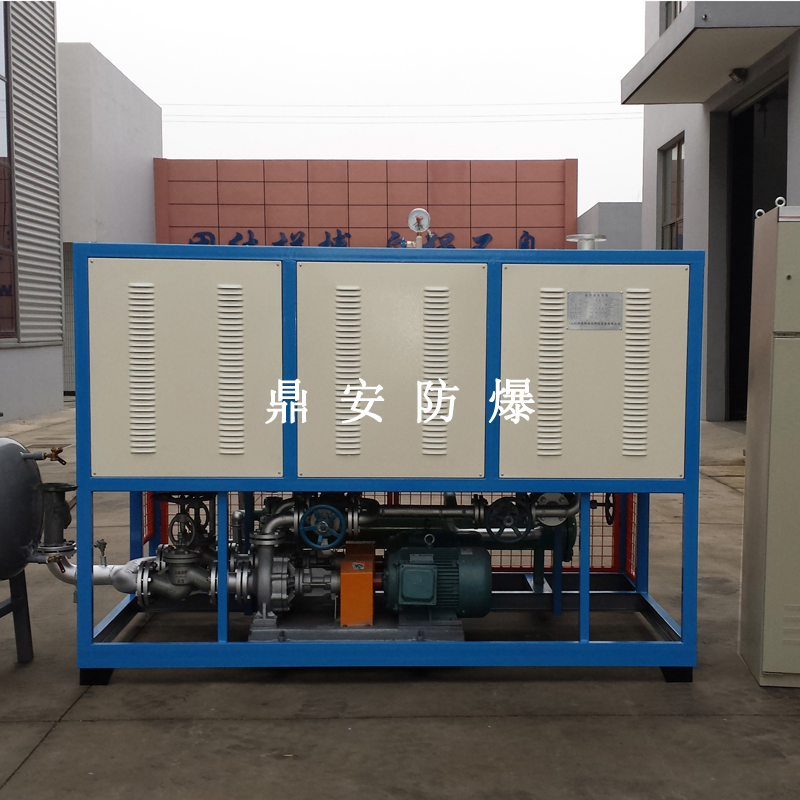 導熱油加熱機組(又稱電加熱導熱油爐)由防爆電加熱器、有機熱載體爐、換熱器(可配置)、控制柜,熱油泵、膨脹槽等組成一個整體的系統,用戶只需要接入電源、介質的進出口管道法蘭及一些電氣接口即可使用。具有完備的運行控制和安全監測裝置,能實行自動化控制。能在較低的運行壓力下獲得較高的工作溫度。