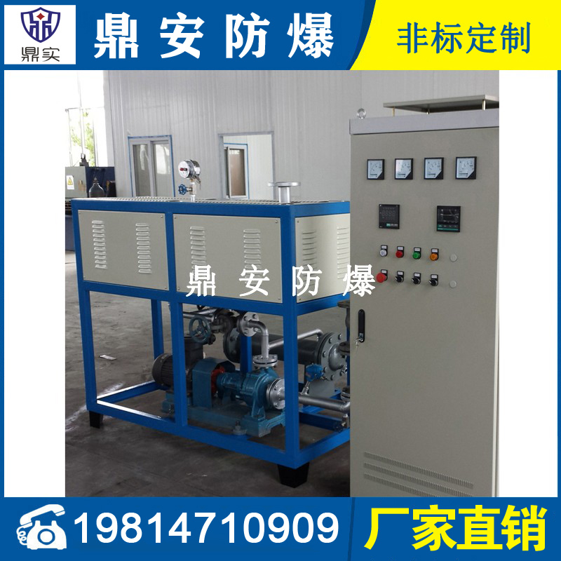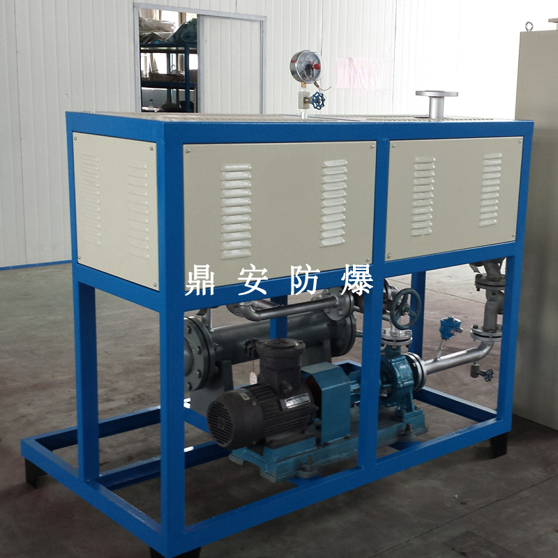 導(dǎo)熱油加熱機(jī)組(又稱電加熱導(dǎo)熱油爐)由防爆電加熱器、有機(jī)熱載體爐、換熱器(可配置)、控制柜,熱油泵、膨脹槽等組成一個整體的系統(tǒng),用戶只需要接入電源、介質(zhì)的進(jìn)出口管道法蘭及一些電氣接口即可使用。具有完備的運行控制和安全監(jiān)測裝置,能實行自動化控制。能在較低的運行壓力下獲得較高的工作溫度。