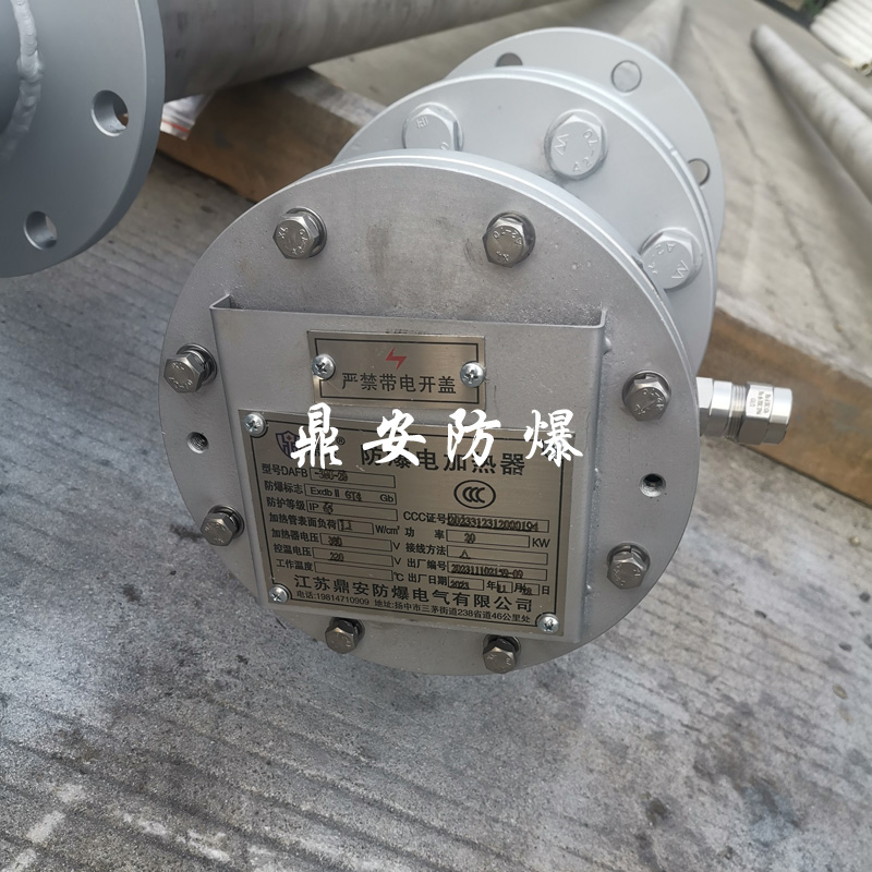 防爆法蘭電加熱管(也稱插入式電加熱器):是采用U型管狀電熱元件,依據加熱不同介質設計規范,按照功率配置要求裝配上防爆法蘭接線盒,可以直接插入需加熱物料中也可配上套管使用,發熱元件工作時所發出的大量熱量傳導給被加熱介質使介質溫度升高,達到所需的工藝要求。當介質溫度達到工藝要求的設定值時,控制系統根據溫度傳感器信號,經PID 運算后調節電加熱器輸出功率,對發熱元件的電阻性負載實現溫度控制。使介質溫度均勻,達到所需要求;當發熱元件超溫或低液位時,發熱元件的聯鎖保護裝置立即切斷加熱電源避免發熱元件燒壞,延長使用壽命。