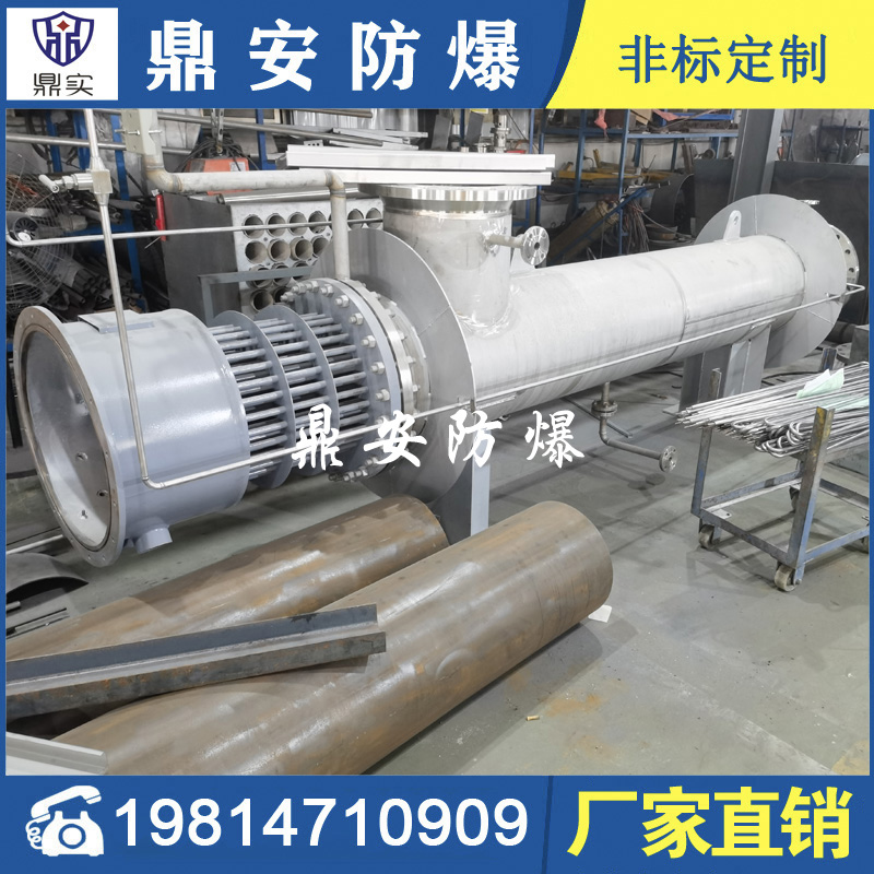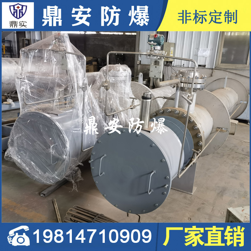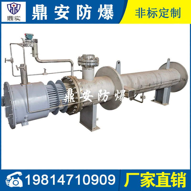 3、應用范圍廣,適應性強; 軸封電加熱器可適用于防爆或普通場合,它的防爆等級可達C級,它的耐壓可達25Mpa。并可根據用戶需要筒體采用立式或臥式不同的安裝方式。